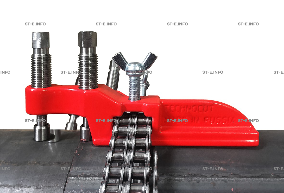 На всех струбцинах цепных центраторов имеется 2 упорных болта, а это значит, что оба конца изделия будут надежно зафиксированы. Но если вам все же нужен только 1 болт, просто открутите второй.
